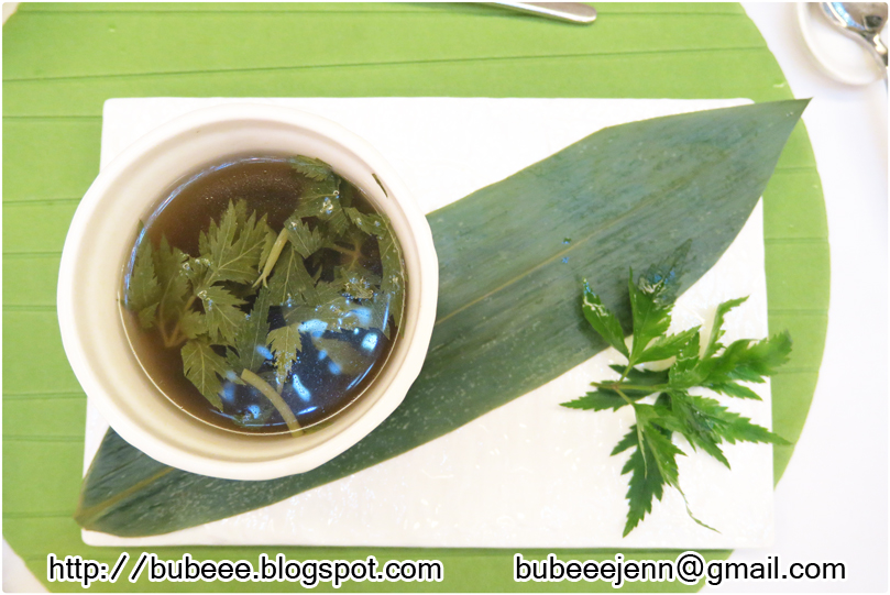 是日第一道菜便利用野生山當歸葉熬製而成的鮮甜活氧當歸湯 Angelica